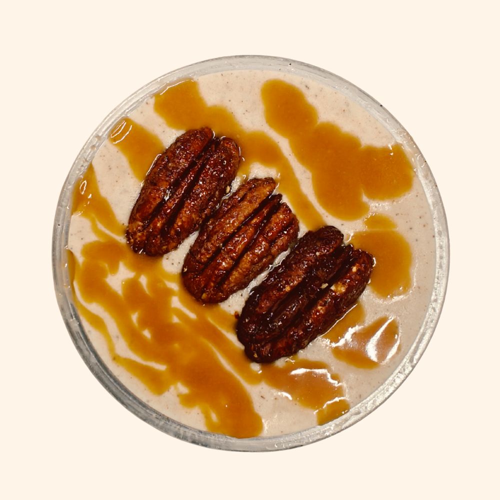 Klasyczne lody śmietankowe wzbogacone domowym karmelem i chrupiącymi karmelizowanymi pekanami. Aksamitna słodycz przełamana orzechowym charakterem i szczyptą soli himalajskiej.